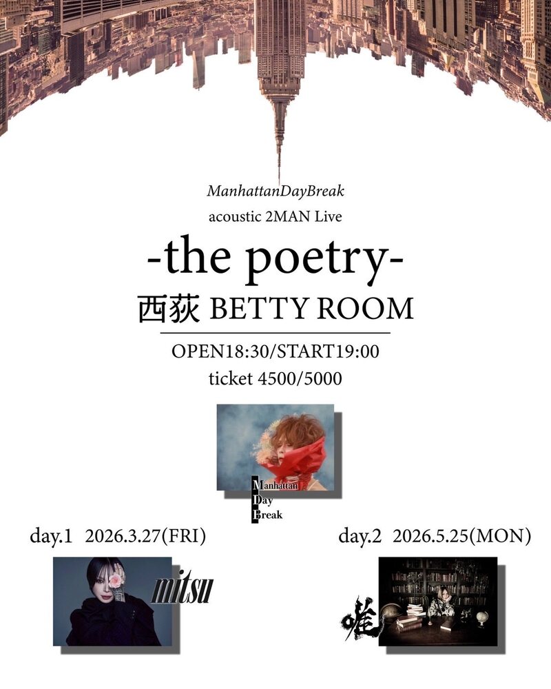 【LIVE】3月27日(金)ManhattanDayBreak acoustic 2MAN Live -the poetry-西荻BETTY ROOM